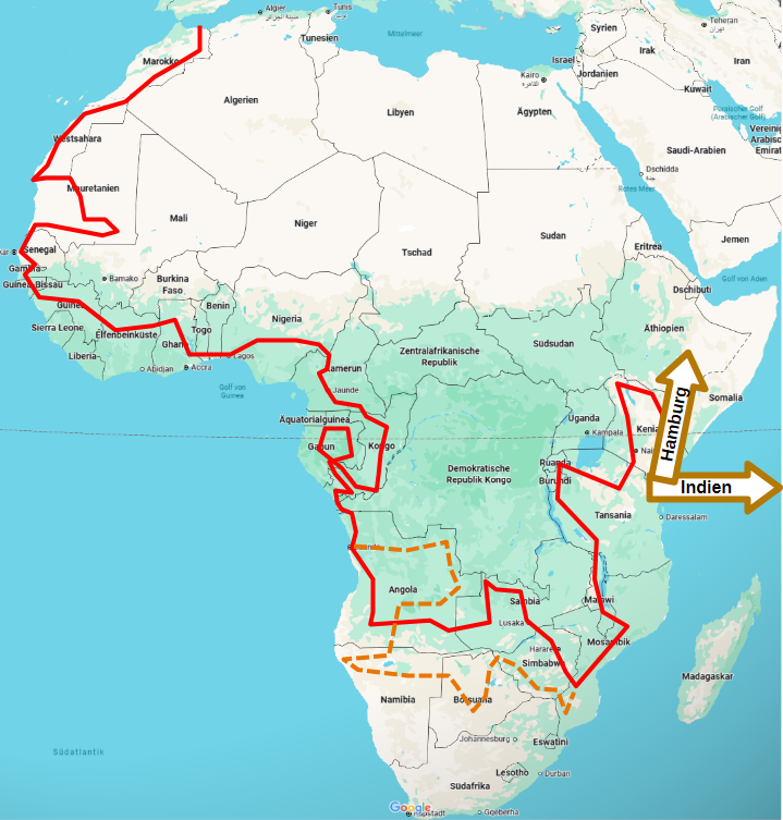 Wir Max und ich, planen um den 1.11.2025 wieder für 1 Jahr nach Afrika zu fahren. Unsere Reiserout ist wie folgt geplant: